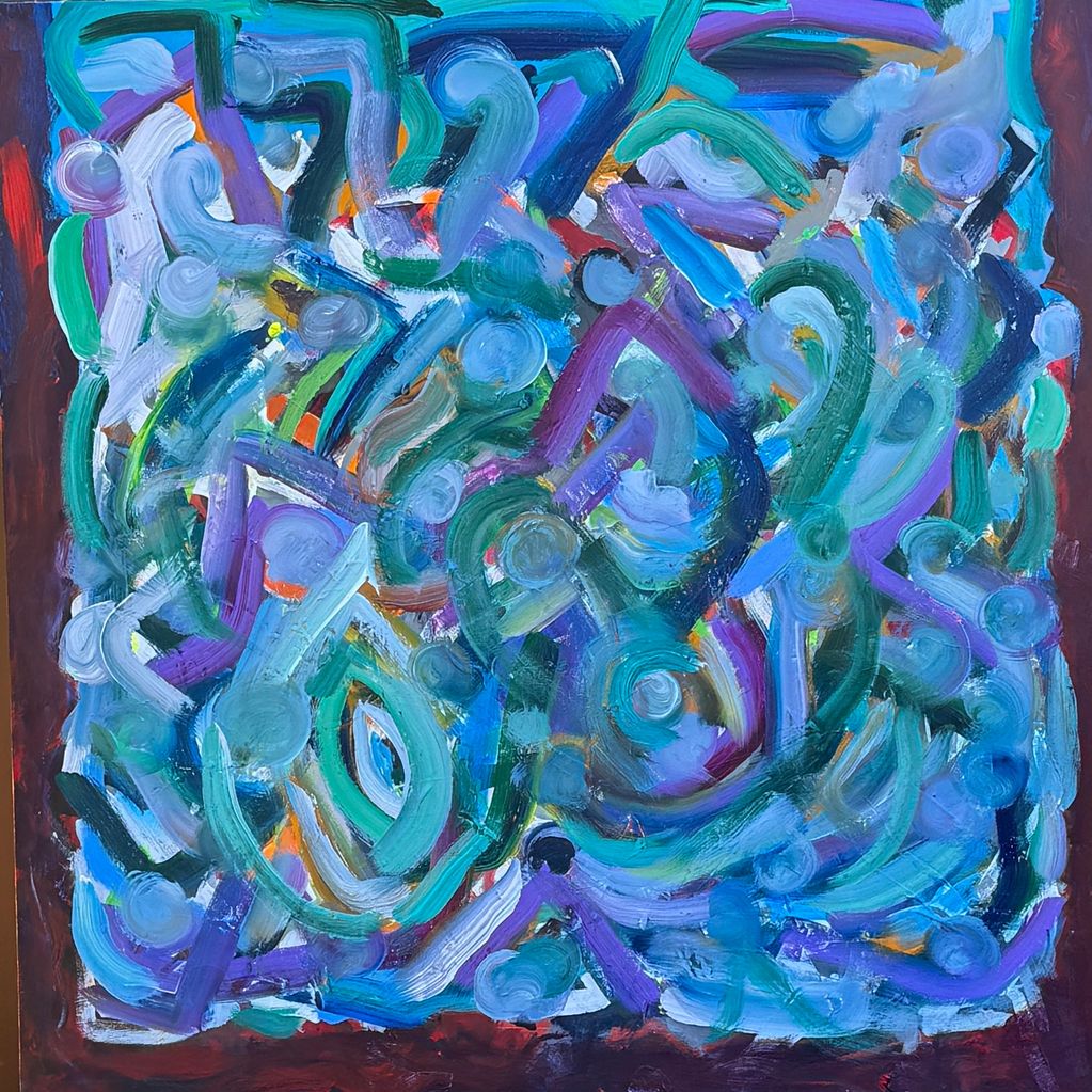 "LIMBS AKIMBO - ACT V (THE AFTERMATH)" is a 36' x 36" acrylic on canvas. It symbolizes the Festival, now frozen in time, and remembered by Jews worldwide as a cautionary tale. If any Jew is unsafe, we are all unsafe.