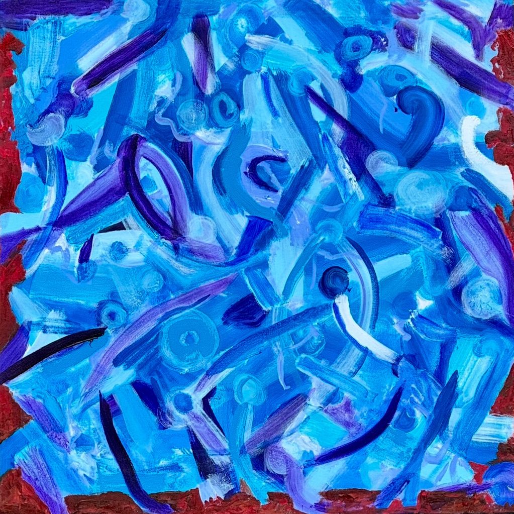 LIMBS AKIMBO - ACT I (The Nova Festival) is a 36"x36" acrylic on canvas. The colors are vivid, the energy is high. There is a celebratory breeze in the air.